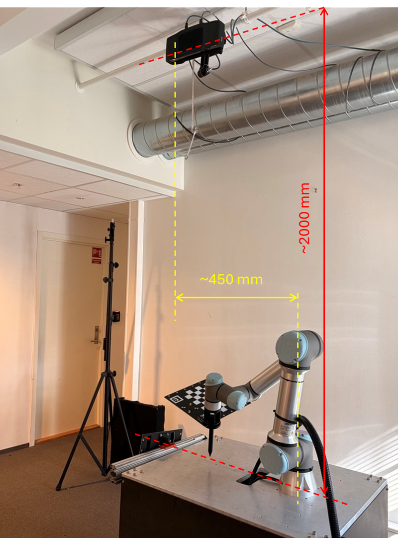 The same dataset was used for hand-eye calibration. However, the acceleration of the robot was intentionally increased to simulate a vibrating calibration board during the dataset acquisition. The delay after the robot reached its target pose before capturing was also intentionally shortened to further simulate the effect of a vibrating calibration board.