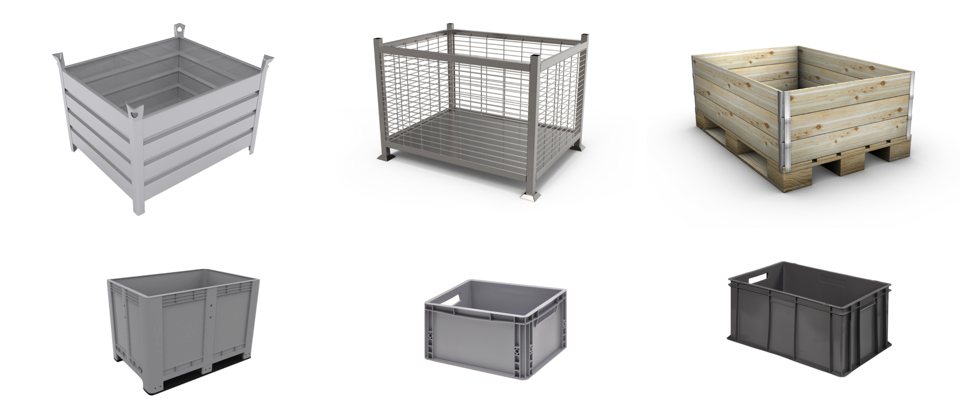 이 섹션은 관심 볼륨(VOI)의 길이, 너비, 높이 및 장면의 빈 수를 기반으로 올바른 Zivid 카메라를 선택하는 데 도움을 주는 것을 목표로 합니다. 빈 피킹에 사용되는 표준화된 크기의 빈은 유로 컨테이너와 표준 플라스틱 토트입니다. 강철 메쉬 케이지, 튼튼한 강철 상자, 나무 상자를 사용하는 것도 일반적이며 때로는 팔레트에서 직접 피킹을 수행하기도 합니다.
