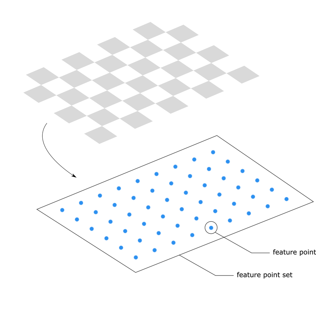 For each calibration object point cloud in the dataset, Zivid software extracts a certain number of feature points. We shall refer to this collection of feature points as a feature point set.