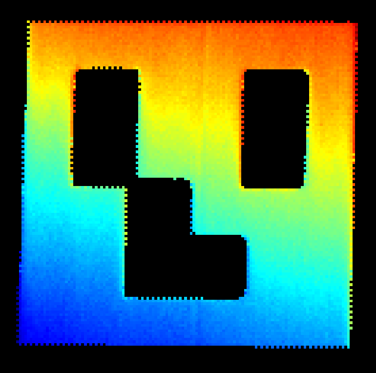 Increase the exposure time by increments of 10000μs [50Hz] or 8333μs [60Hz] until there is good data on the black regions of your calibration object. If the limit has been reached and the data is not yet good enough, follow the next option.