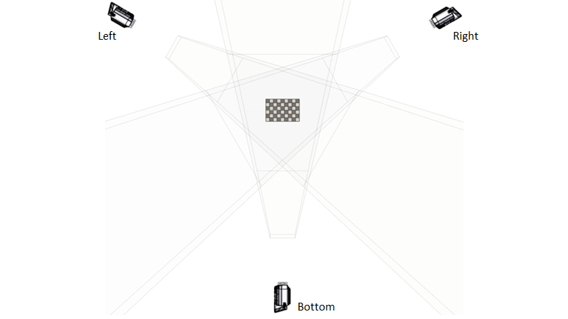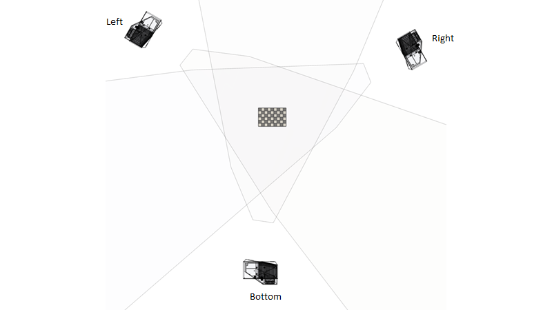 FOV 비율은 칼리브레이션 대상을 공통 평면에 더 가깝게 이동하도록 합니다. 그렇게하면 카메라와 칼리브레이션 대상 사이의 각도가 더 가파르게 됩니다. 체커보드의 해상도가 너무 낮아 칼리브레이션을 수행할 수 없거나 포인트 클라우드 품질이 충분하지 않은 경우 다음을 확인합니다. Multi-step calibration.