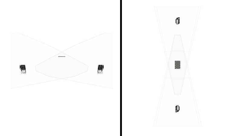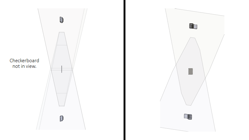 다행히도 칼리브레이션 대상을 FOV의 한쪽으로 이동하여 각도 제한을 줄일 수 있습니다. 이렇게 하면 칼리브레이션 대상이 두 카메라의 ZY 평면과 정렬되더라도(180도 시나리오) 카메라가 칼리브레이션 대상을 확인 할 수 있습니다.