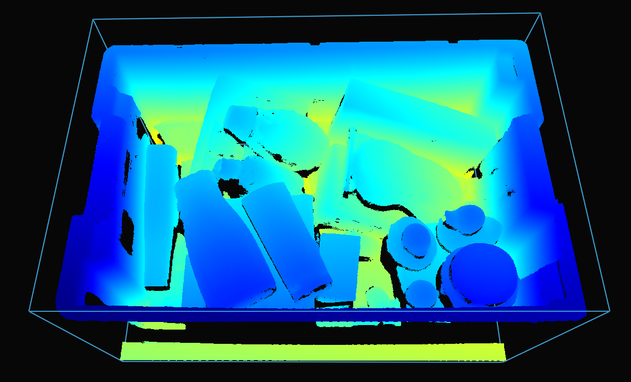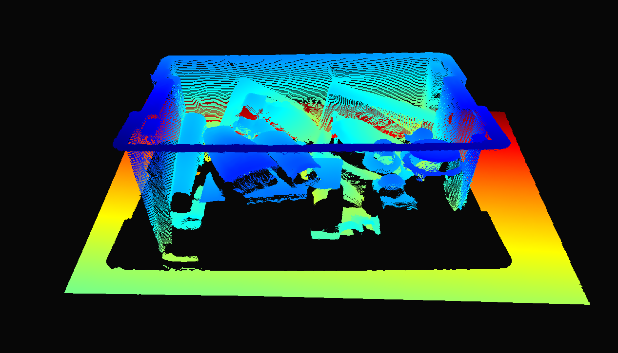 The camera field of view is often larger than our Region of Interest (ROI), e.g., a bin. To optimize data processing, we can set an ROI box around the bin and crop the point cloud accordingly, capturing only the bin contents. ROI box filtering not only decreases the capture time but also reduces the number of data points used by the algorithm, consequently enhancing its speed and efficiency.