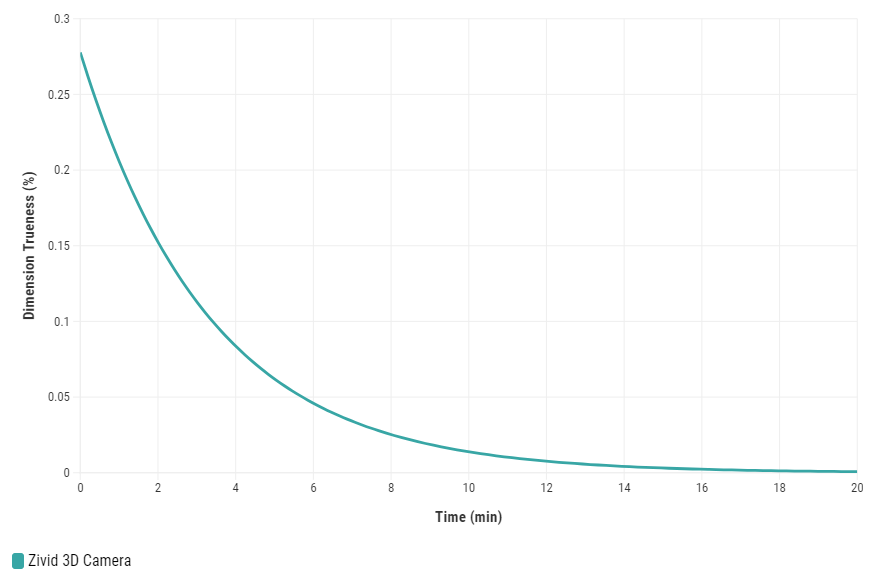 Zivid 3D 카메라가 예열되고 열 평형에 도달하도록 허용하면 애플리케이션의 전반적인 정확성과 성공을 향상시킬 수 있습니다. 애플리케이션이 엄격한 허용 오차를 요구하는 경우(예: 카메라에서 미터 거리당 허용 오차가 5mm 미만인 애플리케이션 선택)에 권장됩니다. 예열된 카메라는 Infield Correction과 Hand-Eye Calibration 결과를 모두 개선합니다.