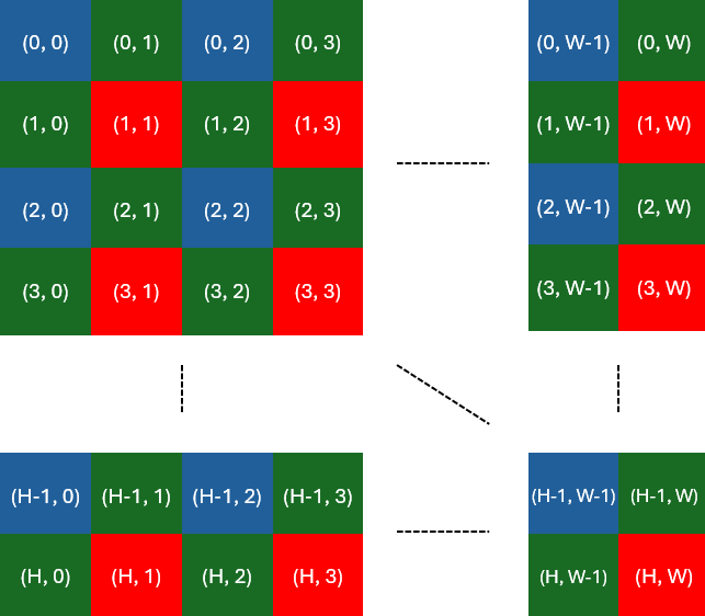 To establish a correlation between the full-resolution 2D data and the subsampled point cloud, a specific mapping technique is required. This process involves extracting RGB values from the pixels that correspond to the Blue or Red pixels from the Bayer grid.