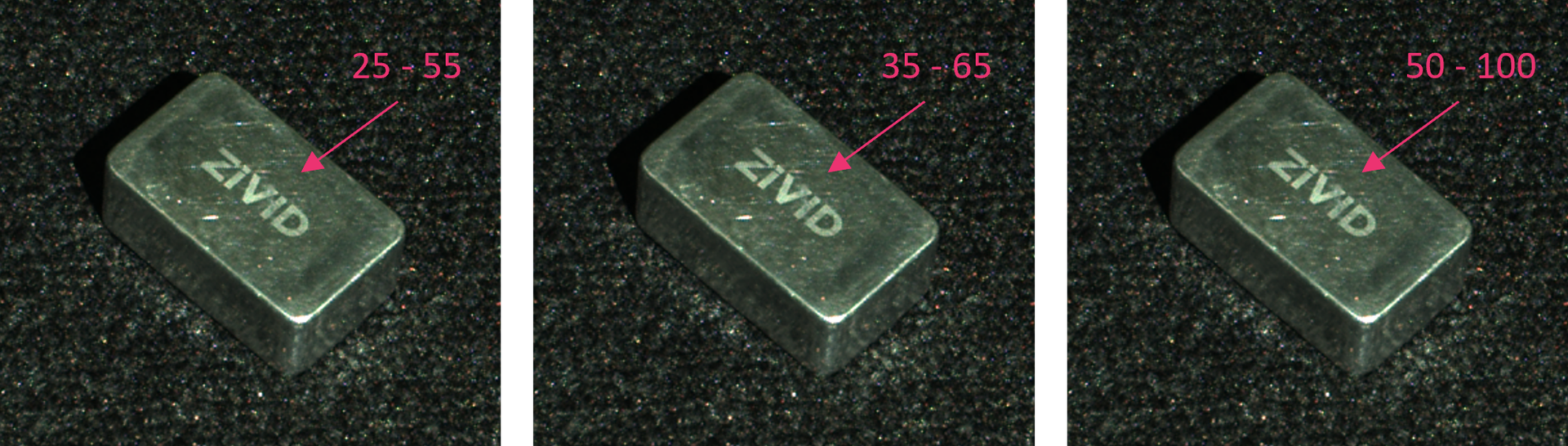 In the above example, we ended up with two acquisitions with following settings on a Zivid 2+ M130: