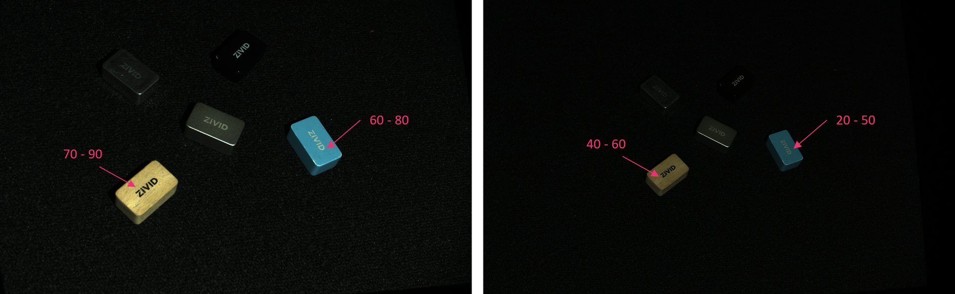Zivid cameras have a high dynamic range, meaning they can cover both bright and dark scenes in a single acquisition. This means you will typically not need much manual tuning, and the Presets will often be sufficient. The following tutorial is therefore only intended when the presets do not give you the desired results.