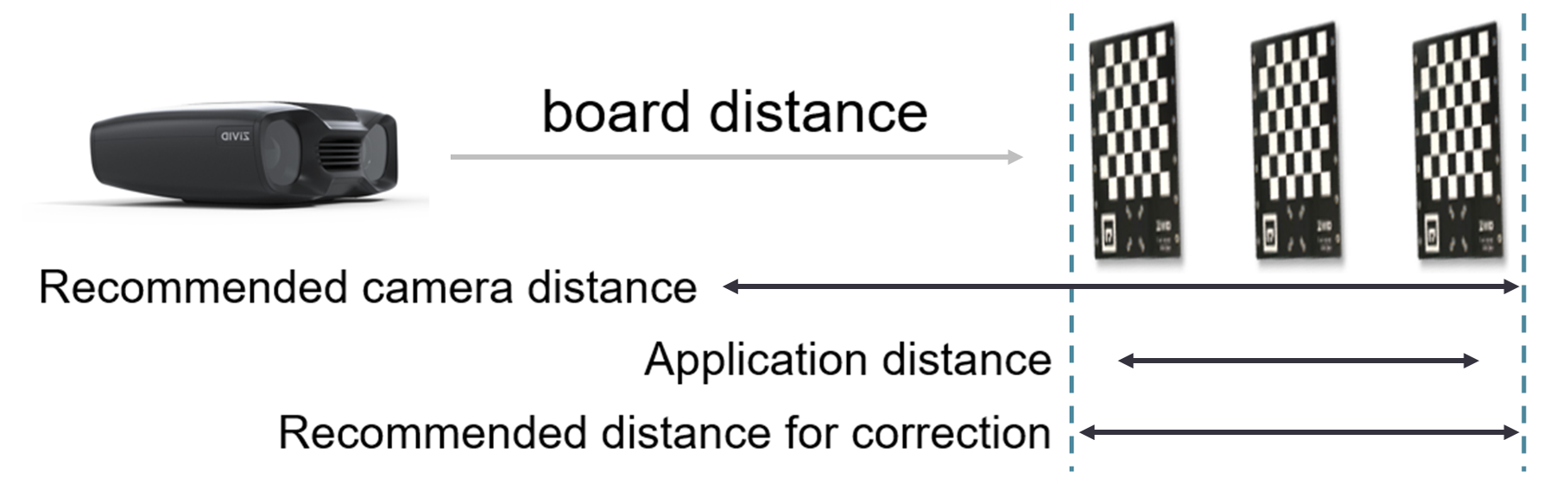 여러 거리에 걸친 보정의 경우 최상의 결과를 얻으려면 Z 깊이를 최소 500mm에서 촬영합니다.
