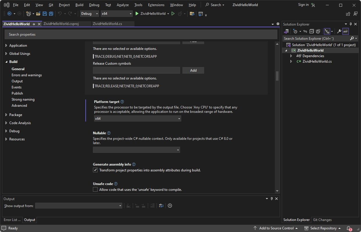 Build a C# “Zivid Hello World” Application in Visual Studio on Windows