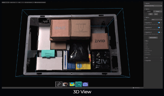 Zivid Studio는 직관적인 그래픽 사용자 인터페이스(GUI)를 제공하므로 기능을 탐색하고 고화질 3D 포인트 클라우드를 캡처할 수 있습니다.