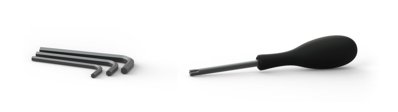 상자에는 Zivid 고정 마운트와 장착 나사가 있습니다. 설치에는 다음 도구가 필요합니다.