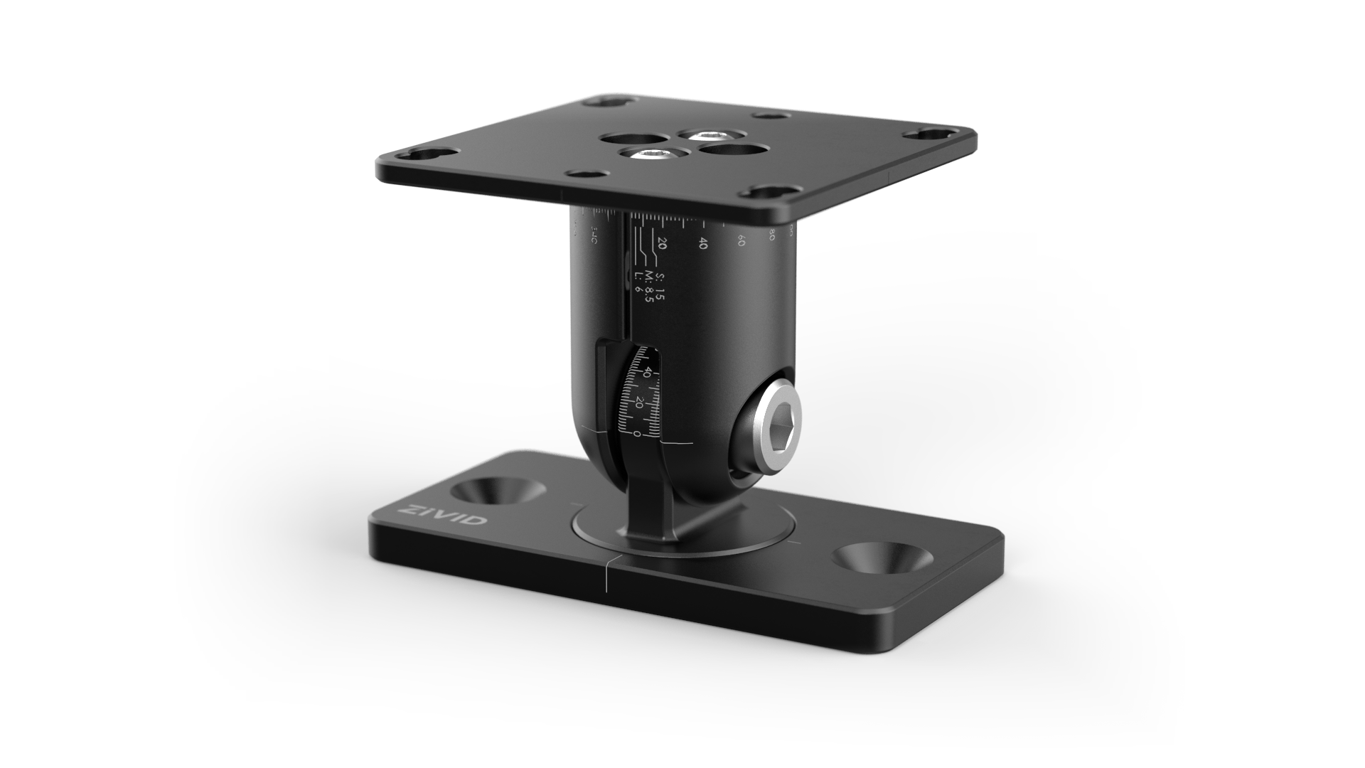 Zivid Stationary Mount 는 빠르고 정밀한 조정이 가능한 독특한 단일 나사 조임 시스템을 갖춘 로우 프로파일의 유연한 카메라 마운트입니다.