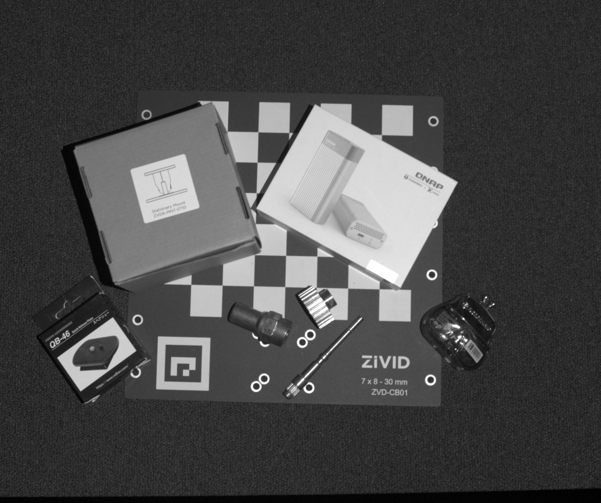 Below are examples of a 2D capture taken with Zivid 2+ MR130 using High Resolution Color, Low Resolution Color, and Low Resolution Grayscale 2D presets.
