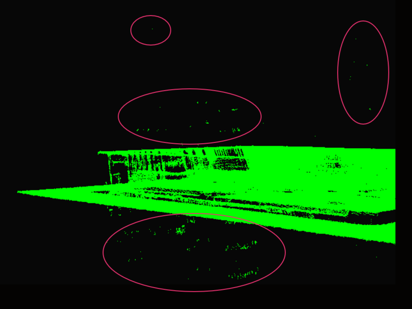 The images below highlight the main advantages of Global mode: better data on object sides and edges, and fewer outliers.