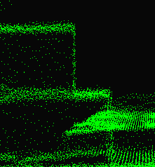 An example of an edge where there are only data points on the top surface due to its position relative to the projector. An example of an edge where there are only data points on the top surface due to its position relative to the projector.