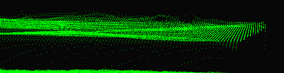 The object shapes appear distorted because of ripples or wave patterns in the point cloud.