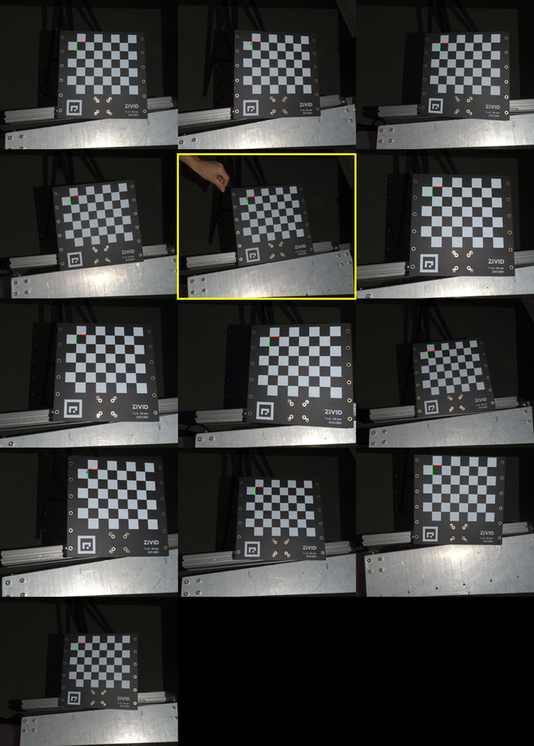 To simulate the problem, the calibration board was intentionally moved between two captures during the acquisition of the dataset (see image below).