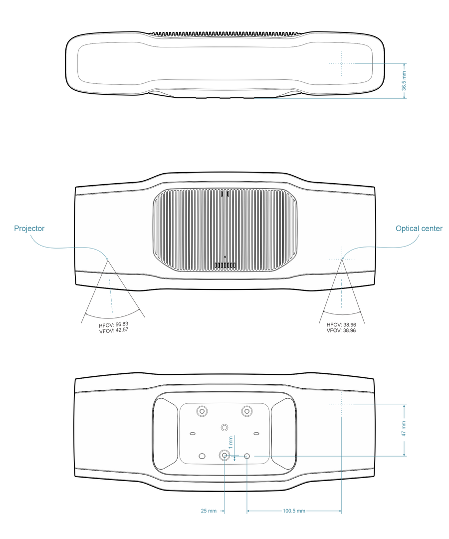 2D相机和投影仪相对于中心轴有一个角度。