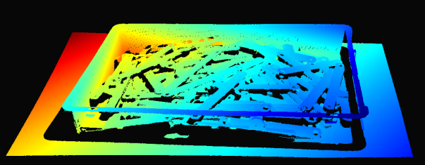 相机视野通常比我们的 感兴趣区域 (ROI) 大,例如一个箱子。为了优化数据处理,我们可以在箱子周围设置一个 ROI 框,并相应地裁剪点云,仅捕获箱子以内的数据。ROI 框过滤不仅可以减少捕获时间,还可以减少算法使用的数据点数量,从而提高其速度和效率。
