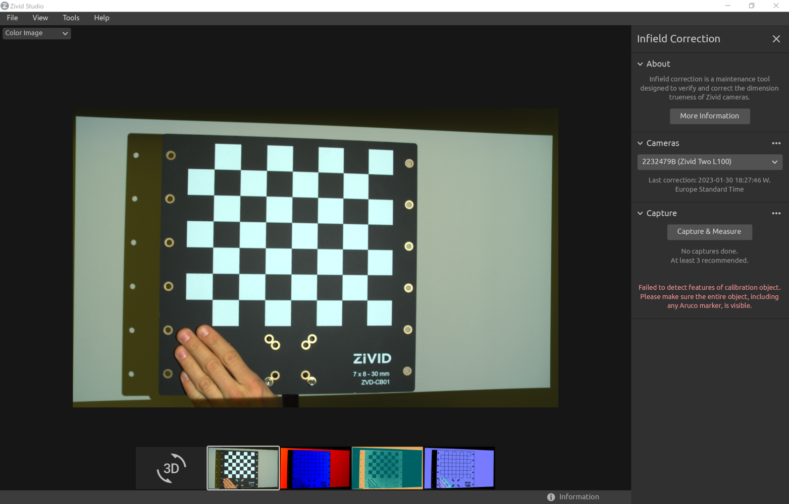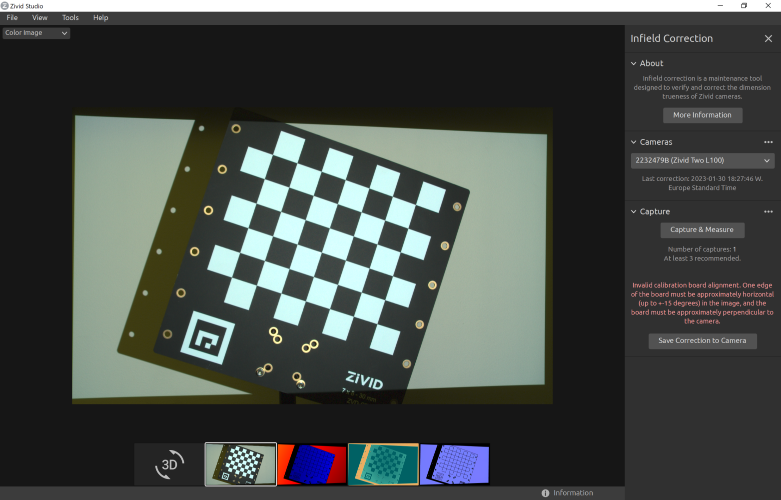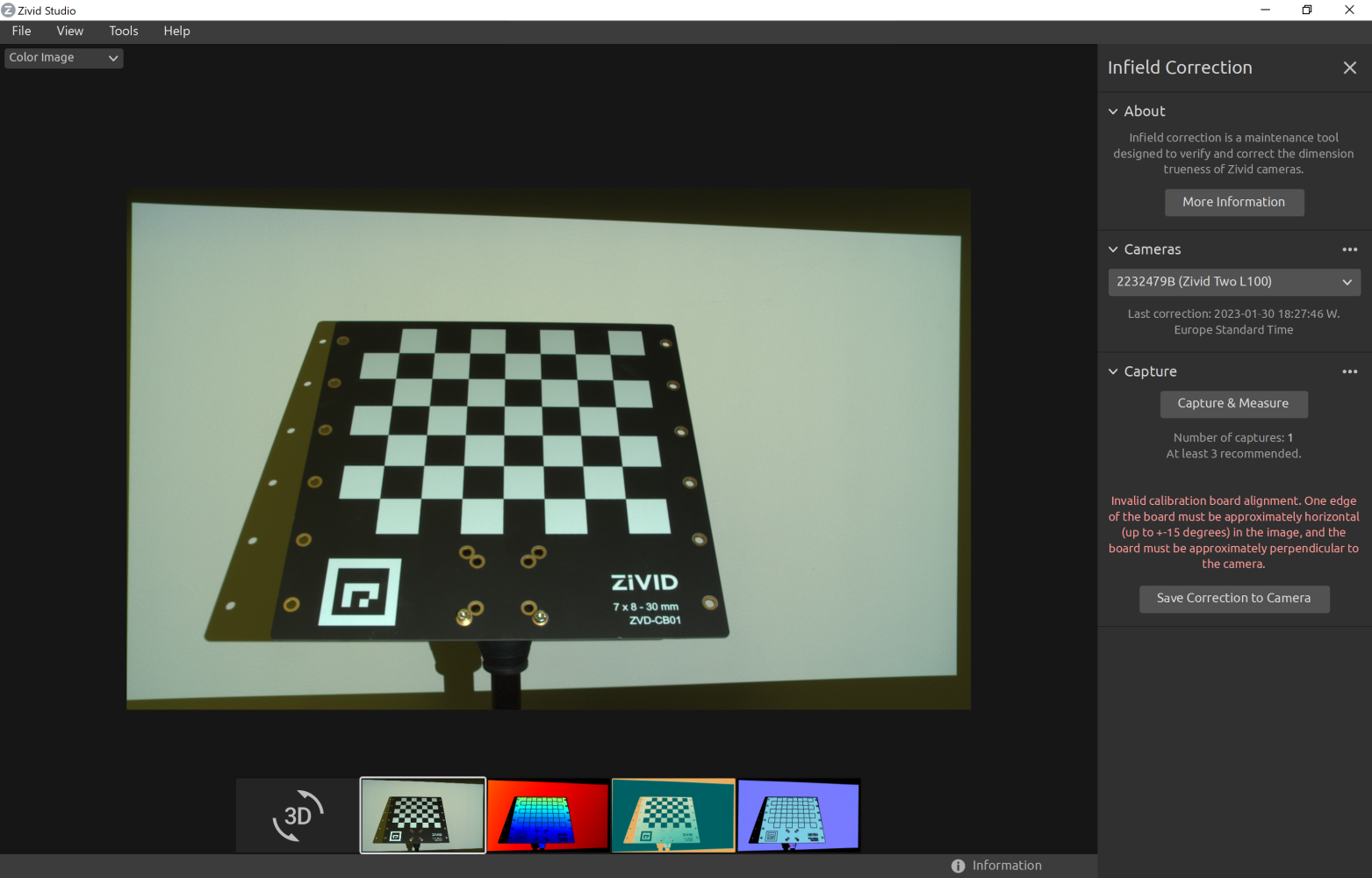Tool for verifying, computing and updating infield correction parameters on a Zivid camera