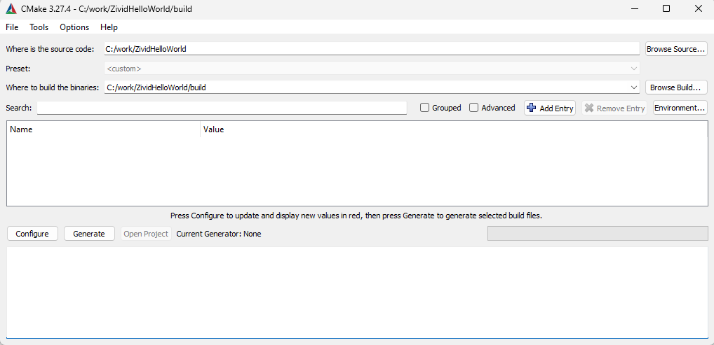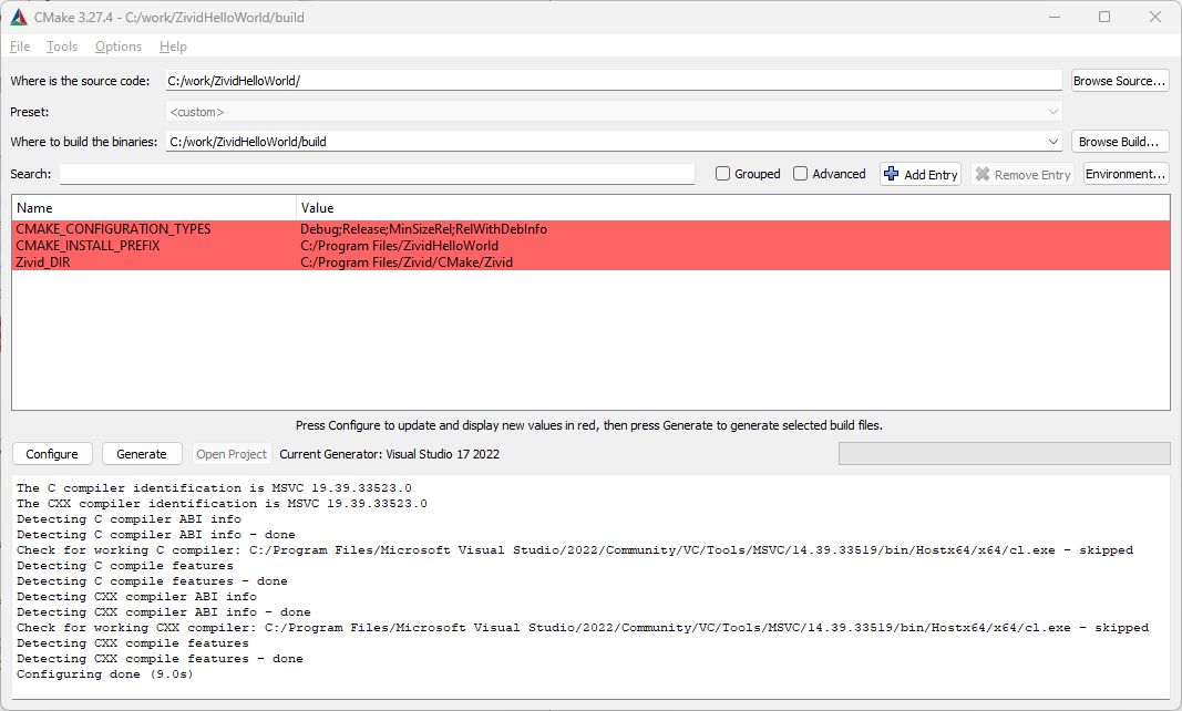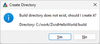 在 ZividHelloWorld 目录中创建一个构建目录,并通过运行以下命令配置解决方案: