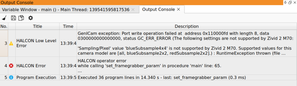 在 Hdevelop 中调试程序可能具有挑战性,因为错误消息并不总是容易理解。在这种情况下, Output Console 可能能够提供更多详细信息。