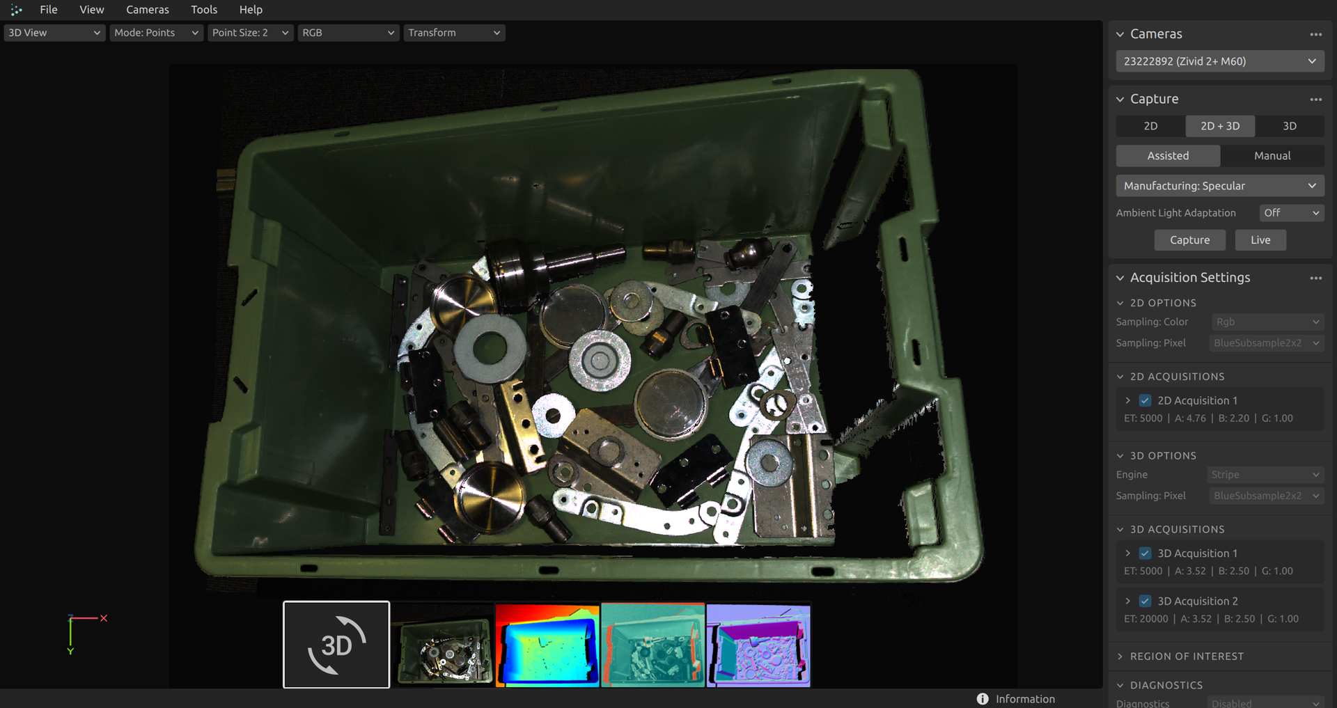 Zivid Studio 是 Zivid SDK 的图形用户界面 (GUI)。它允许用户探索 Zivid 相机的功能以及进行 3D 点云的捕获。