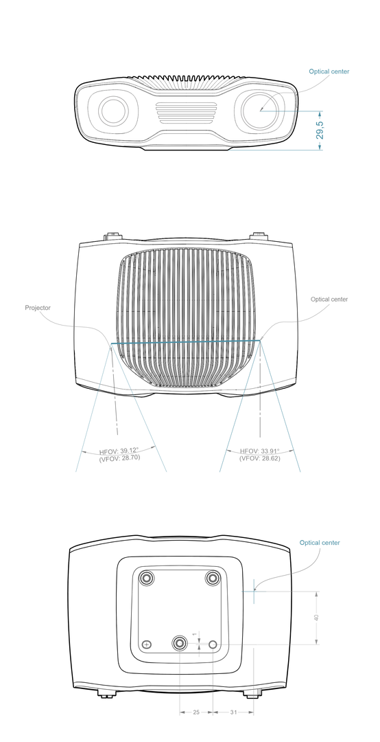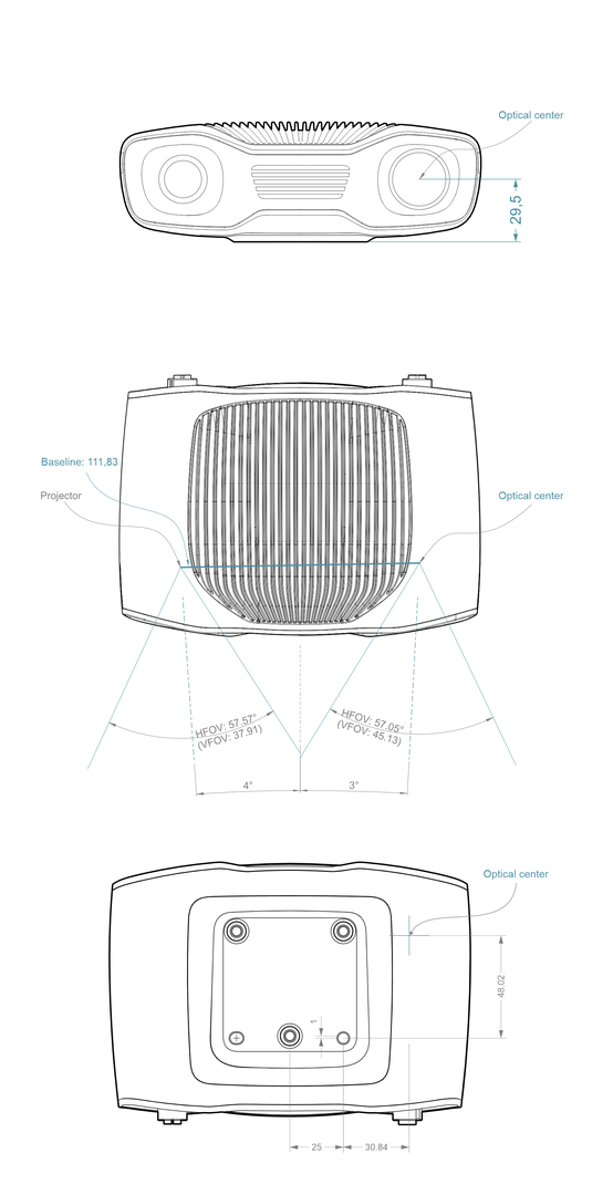 机械图中标注了Zivid相机相的光学中心相对于机械接口的位置。