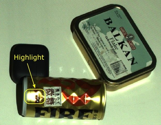 闪亮表面(例如金属圆柱体)上的镜面反射。